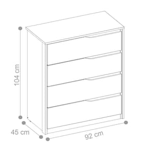 Complemento ideal para o seu dormitórios. Possui 4 gavetas, com profundidades ideais aliadas a beleza do seu design, enriquecidos pelo detalhecurvo nas frentes de gaveta.