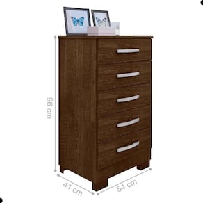 ALTURA DO PRODUTO COM EMBALAGEM (CM): 10 | QUANTIDADES DE CAIXAS DE EMBALAGEM: 1 | QUANTIDADE DE GAVETAS: 5 | PRODUTO PRECISA DE MONTAGEM?: Sugerimos a contratação de um montador para a montagem do produto. Não nos responsabilizamos por causadas no ato da montagem. | ESTADO DE ORIGEM: SP | COMPRIMENTO DO PRODUTO (CM): 41 | ALTURA DO PRODUTO (CM): 96 | MATERIAL PRINCIPAL: MDP | PESO PRODUTO COM EMBALAGEM (KG): 25 | DESCRIÇÃO DO TAMANHO: 96x54x41 cm | LARGURA PRODUTO COM EMBALAGEM (CM): 56 | MATERIAL PARA FILTRO: MDP | PRODUTO: Cômoda | CORES DO PRODUTO (FILTRO DE CORES): Malbec | LARGURA DO PRODUTO (CM): 54 | CONTEÚDO DA EMBALAGEM: 1 Cômoda | QUANTIDADE DE PORTAS: não possui | PESO DO PRODUTO (KG): 25 | COMPRIMENTO PRODUTO COM EMBALAGEM (CM): 94 | COR PREDOMINANTE: Marrom | INSTRUÇÕES/CUIDADOS: Limpar com pano macio e seco, não utilçizar produtos abrasivos