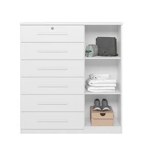Cómoda Moderna com 6 Gavetas e Cabideiro Vision -MobiBaby - Branco