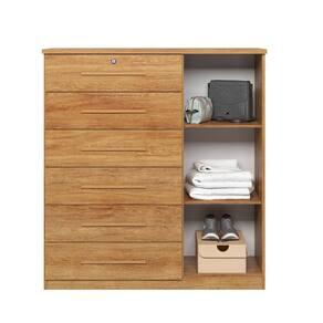 Cómoda Moderna com 6 Gavetas e Cabideiro Vision -MobiBaby - Marrom