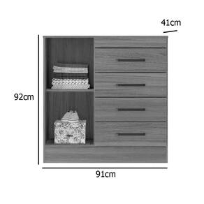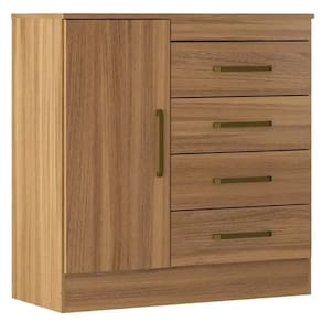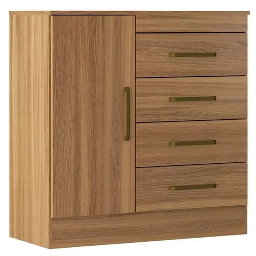 Cômoda Montevideu 4 Gavetas 1 Porta Demobile Feita para organizar o seu quarto com um toque de elegância, a Cômoda Montevideu 4 Gavetas 1 Porta Demobile é a solução perfeita para quem busca praticidade e um visual moderno. Com uma estrutura robusta em MDP, ela garante a durabilidade necessária para o seu dia a dia. As quatro gavetas com corrediças metálicas deslizam suavemente, oferecendo um espaço amplo para organizar roupas e objetos pessoais. A porta com prateleira interna é um diferencial que se adapta às suas necessidades, ideal para guardar sapatos, livros ou o que mais você precisar. O acabamento em pintura UV oferece resistência e um visual sofisticado, combinando facilmente com diferentes decorações. Os puxadores em ABS finalizam o design, proporcionando um toque moderno e funcional. Compacta e espaçosa, a Cômoda Montevideu 4 Gavetas 1 Porta Demobile é uma peça versátil que se encaixa em quartos de casal, solteiro ou até mesmo infantis.\nMedidas\nAltura 92 cm\nLargura 91 cm\nProfundidade 41 cm\nCaracterísticas\nModelo Cômoda Montevideu\nTipo do produto Cômoda\nFabricante Demobile\nMaterial MDP\nQuantidade de Portas 01\nTipo de Porta Bater\nQuantidade de Gavetas 04\nTipo de Corrediça Metálica\nGarantia 3 meses\nAcabamento Pintura UV\nNecessita Montagem Sim\nAcompanha Manual de Instalação Sim\nInformações Importantes\nObjetos decorativos que porventura apareçam na foto, não acompanham o produto. Não nos responsabilizamos pela montagem/instalação dos produtos.\nMontagens, desmontagens e instalações são responsabilidades do cliente. Indicamos que contrate uma empresa de montagem ou um montador de sua confiança.\nAlém disso, favor verificar se os pés e acessórios estão dentro do forro inferior do produto. Em suma, todas as informações divulgadas sobre o produto são de responsabilidade do Fabricante.\nAs cores do produto podem variar de acordo com o seu monitor, a iluminação do ambiente em que você está e até mesmo a sua percepção visual. Além da cor, pequenos detalhes e acabamentos podem não ficar evidentes na foto, por isso as imagens são meramente ilustrativas.