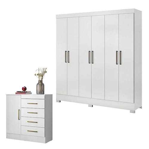 Cômoda Montevidéu e Guarda Roupa Casal Prático Branco - Demóbile