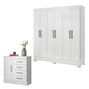 Cômoda Montevidéu e Guarda Roupa Casal Prático Branco - Demóbile