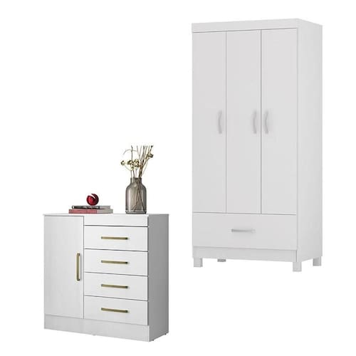Cômoda Montevidéu e Guarda Roupa Solteiro Prince Branco - Demóbile