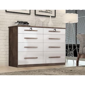 COMODA MONZA| Com 8 gavetas dispõe de um design sofisticado é própria para pessoas exigentes com organização. Possui um acabamento arredondado no tampo de 25 mm que enobrece o produto e o deixa mais resistente e belo. As gavetas tem corrediças metálicas o que facilitam a montagem. Suporta pesos de até 7kg em suas gavetas e 20kg no tampo suficiente para acomodar televisores. As gavetas possuem tamanhos diferentes sendo as primeiras com chave, as do meio gavetas medias e as ultimas gavetões. Logo, essa cômoda é ideal para guardar roupas, meias, cuecas e objetos pessoais com privacidade.