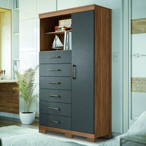 Cômoda Multiuso 1 Porta 6 Gavetas Com Pés Marabá Santos Andirá Jatoba/grafitte