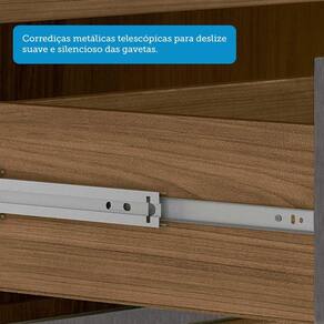 Estrutura em MDP 12mm, fundo em HDF 2,5mm, frente das gavetas, portas e tampo superior em MDP 15mm.