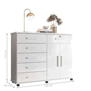 COR PREDOMINANTE: BRANCO BRILHO | LARGURA DO PRODUTO (CM): 126 | DESCRIÃ?Ã?O DO TAMANHO: 115X126X45 | ALTURA DO PRODUTO COM EMBALAGEM (CM): 24 | QUANTIDADE DE PORTAS: 2 | COMPRIMENTO DO PRODUTO COM EMBALAGEM (CM): 130 | COMPRIMENTO DO PRODUTO (CM): 45 | QUANTIDADE DE CAIXAS NA EMBALAGEM: 2 | ESTADO DE ORIGEM: SP | PESO DO PRODUTO (KG): 64 | GARANTIA DO FABRICANTE: 3 | CORES DO PRODUTO (FILTRO DE CORES): BRANCO BRILHO | MATERIAL PRINCIPAL: MDP | PRODUTO: COMODA | MARCA: CASAH | LARGURA DO PRODUTO COM EMBALAGEM (CM): 36 | INSTRUÃ?Ã-ES/CUIDADOS: Limpar com pano macio e seco, nÃo utilizar produtos abrasivos. | PESO DO PRODUTO COM EMBALAGEM (KG): 64 | QUANTIDADE DE PRATELEIRAS: 2 | ALTURA DO PRODUTO (CM): 115 | PRODUTO PRECISA DE MONTAGEM?: Sim, a montagem à facil mas sugerimos a contrataÃÃo de um montador profissional para a montagem do produto. NÃo nos responsabilizamos por danos causados no ato da montagem. | QUANTIDADE DE GAVETAS: 6
