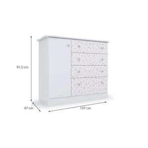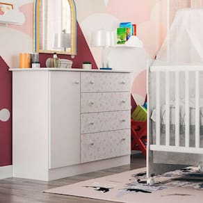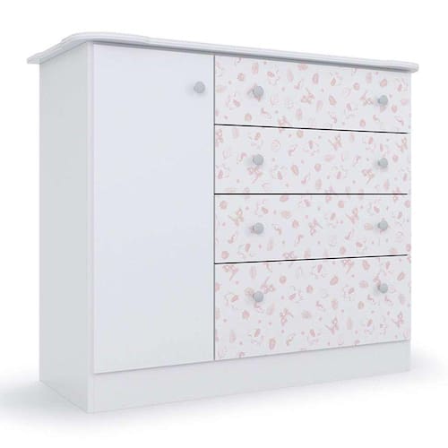 que tal a cômoda new baby? para complementar o quarto infantil e ter uma boa ajuda na hora de organizar os itens da criança, pode contar coômoda new baby! com 1 porta e 4 gavetas, ela favorece sua organização no dia a dia, acomodando peças que podem ser dobradas ou até cosméticos, fraldas e itens de higiene. feita em material resistente, a peça tem ótima durabilidade e design clean que torna fácil harmonizá-la com o restante dos móveis no cantinho dessa pessoa especial. tudo de bom, né? Marca: Modern Ean: 7899451827051