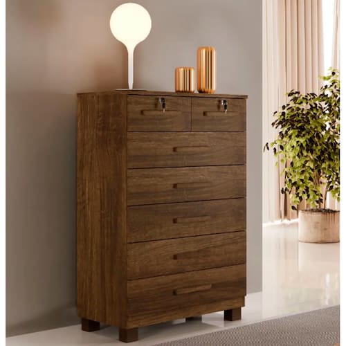 Cômoda New Barcelona 7 Gavetas Benetil Móveis - Imbuia - Marrom