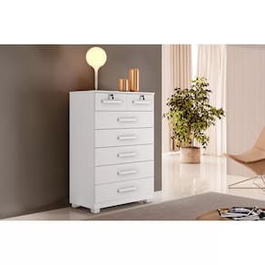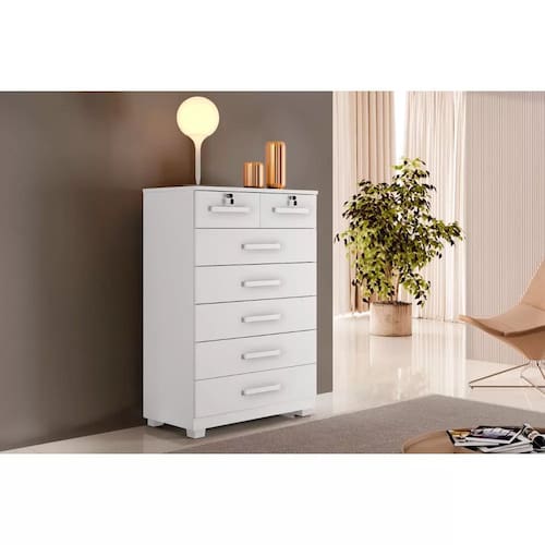 A cômoda Barcelona com seu lindo design trás charme e elegância a qualquer espaço, contem tampo de 25 mm que garante uma robustez incrível, além de possuir 7 gavetas,2 gavetas com chave ainda conta com corrediça telescópica que proporciona uma maior suavidade em seu uso diário, acômoda muita roupa e seus acessórios tudo muito bem organizado. Características: Tipo Pintura: u. V. Origem Do Produto: Nacional Ambiente Principal: Quarto Material Principal: mdp Possui Portas: Não Possui Prateleira: Não Possui Gavetas: 7 Possui Chave e Tranca: 2 Tipo Portas: Não Tipo Puxador: Madeirado Complexidade Da Montagem: Médio Sistema De Montagem: Parafusos e Cavilha Possui Pés: Sapatas U Rodízio Com Trava: Não Altura Dos Pés: Não Material Dos Pés: Pvc