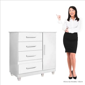 Quer um móvel para deixar seu quarto mais prático e funcional? A Cômoda Florença é perfeita para você. Possui quatro gavetas com excelente profundidade e espaço interno. As gavetas com corrediça telescópica proporcionam maior abertura e melhor aproveitamento do espaço. É fabricada com materiais de alta qualidade, oferecendo mais firmeza e durabilidade. Além disso, tem uma porta que auxilia na organização e armazenamento dos objetos. Os puxadores são madeirados, proporcionando um ótimo acabamento ao móvel.