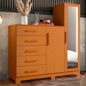 Cômoda New Master 5 Gavetas e Espelho Albatroz