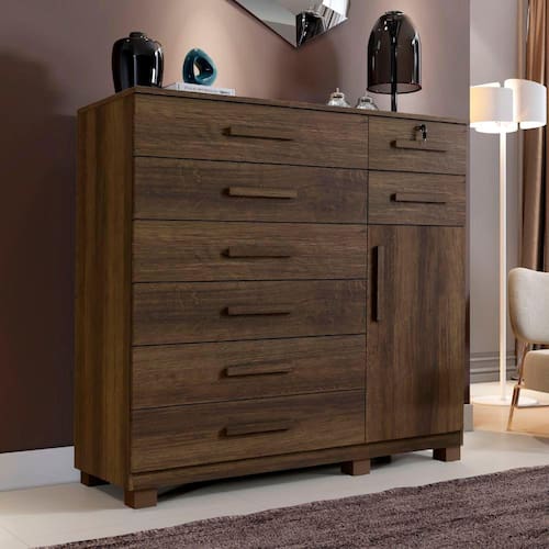 A CÔMODA VITÓRIA PLUS COMPELTA SEU QUARTO COM MUITO CHARME E BELEZA, POSSUI 8 GAVETAS MUITO ESPAÇOSA SENDO 1 COM CHAVE, COM CORREDIÇAS PELESCOPICA QUE DA MUITA SUAVIDADE E RESISTENCIA ,AINDA POSSUI 1 PORTA E TEM 1 PRATELEIRA INTERNA QUE CONSTITUI UMA SAPATEIRA BEM DEFINIDA, ALÉM DE POSSUIR TAMPO DE 25 MM QUE GARANTE UMA VIDA ÚTIL MUITO MAIOR E MUITA RESISTENCIA .