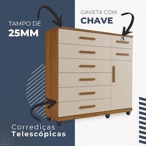 Comoda New Vitoria Com Porta e 8 Gavetas MDP