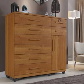 Cômoda New Vitoria Com Porta E 8 Gavetas Benetil Cinamomo Procurando um móvel prático e funcional para o quarto? A Cômoda Vitória é excelente! Ela oferece conforto e comodidade. As oito gavetas contam com amplo espaço interno, além de ótima profundidade, deixando tudo mais organizado. Além disso, possuem corrediças telescópicas e chave em uma das gavetas. Os puxadores são madeirados, proporcionando um ótimo acabamento ao móvel. É ideal para deixar o quarto mais prático e bonito! Características: Marca: Benetil Estilo: Moderno Origem do produto: Nacional Material principal: MDP Ambiente principal: Quarto Escala de Brilho: Fosco Possui gavetas: Sim, 8. Possui chaves: Sim Tipo de Corrediça: Telescópica Tipo de Puxador: Madeirado Possui portas: Sim Possui prateleira: Sim, interna. Cabideiro: Não Necessita Montagem: Sim