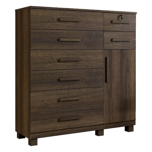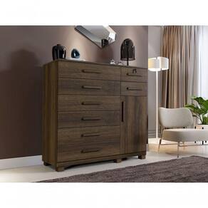 Cômoda New Vitoria Com Porta E 8 Gavetas Benetil Imbuia Procurando um móvel prático e funcional para o quarto? A Cômoda Vitória é excelente! Ela oferece conforto e comodidade. As oito gavetas contam com amplo espaço interno, além de ótima profundidade, deixando tudo mais organizado. Além disso, possuem corrediças telescópicas e chave em uma das gavetas. Os puxadores são madeirados, proporcionando um ótimo acabamento ao móvel. A estrutura em MDP 2,5 cm proporciona mais firmeza e durabilidade. É ideal para deixar o quarto mais prático e bonito! Características: Marca: Benetil Estilo: Moderno Origem do produto: Nacional Material principal: MDP Ambiente principal: Quarto Escala de Brilho: Fosco Possui gavetas: Sim, 8. Possui chaves: Sim Tipo de Corrediça: Telescópica Tipo de Puxador: Madeirado Possui portas: Sim Possui prateleira: Sim, interna. Cabideiro: Não Necessita Montagem: Sim