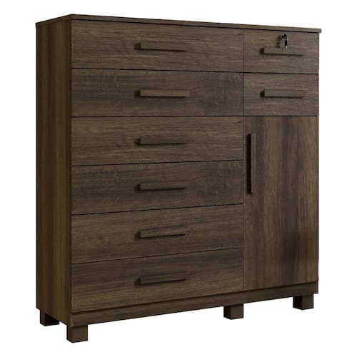 Características: Marca: Benetil Estilo: Moderno Origem do produto: Nacional Material principal: MDP Ambiente principal: Quarto Escala de Brilho: Fosco Possui gavetas: Sim, 8. Possui chaves: Sim Tipo de Corrediça: Telescópica Tipo de Puxador: Madeirado Possui portas: Sim Possui prateleira: Sim, interna. Cabideiro: Não Necessita Montagem: Sim