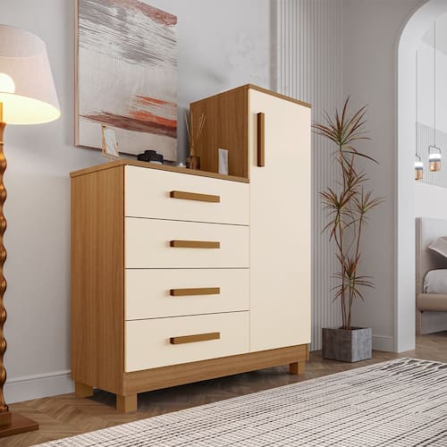 Cômoda Versátil com 4 Gavetas e Multiuso: Praticidade, Estilo e Muito Espaço! Deixe seu ambiente mais organizado e bonito com essa cômoda funcional e moderna!