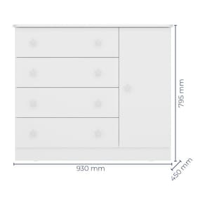 A linha infantil da Qmovi era o que faltava para o seu bebê. Uma linha com vários produtos modernos e um padrão de qualidade para as mamães exigentes e preocupadas com a segurança dos seus bebês. A Cômoda Sapateira Doce Sonho com 04 gavetas e 1 porta é a peça certa para complementar o quarto, com muito estilo valorizando a decoração. Um móvel bonito, útil e que ocupa pouco espaço. Estrutura reforçada em MDP de qualidade e belíssimo acabamento em pintura UV proporcionando maior durabilidade e resistência ao móvel. Complemente seu ambiente com bom gosto e qualidade!