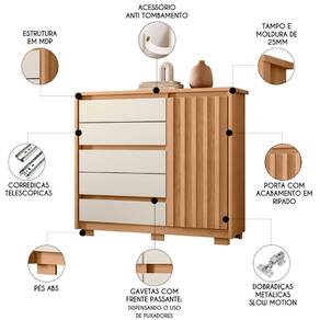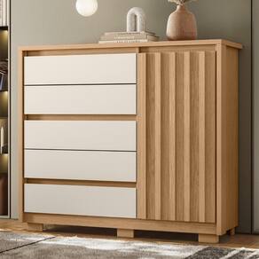 Com 5 gavetas, você terá espaço de sobra para organizar suas roupas, acessórios e itens pessoais, ou até mesmo para guardar peças de cama, mesa e banho. As corrediças telescópicas garantem um deslize suave e silencioso ao abrir e fechar as gavetas, facilitando o acesso aos seus pertences. Além disso, é uma cômoda sapateira já que conta om 1 porta que oferece espaço extra. Outro ponto alto é que essa cômoda possui tampo e moldura de 25mm, o que torna esse móvel durável e resistente. Para completar, os pés oferecerem estabilidade e , ao passo que o acessório de fixação na parede evita tombamentos acidentais.