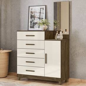 Cômoda Para Quarto 104cm Com Espelho Kyra Castanho Wood/Off Z17 - Mpozenato