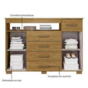 Cômoda Para Quarto 4 Gavetas 2 Portas - Oslo Marrocos Cômoda para Quarto 4 Gavetas 2 Portas - Oslo Marrocos - A organização que seu lar precisa, com o estilo que você ama. A Cômoda Oslo é a solução completa para quem busca organização, qualidade e design. Com uma estrutura robusta de 65kg e tampo de 25mm, ela oferece a base perfeita para seus objetos. Internamente, 4 gavetas com corrediças telescópicas e 2 portas com prateleiras garantem amplo espaço. Detalhes como os puxadores em alumínio e os pés inclusos agregam valor e durabilidade. Disponível em diversas cores, do branco alto brilho aos tons amadeirados, a Oslo se adapta ao seu estilo. Um móvel multifuncional e imponente.