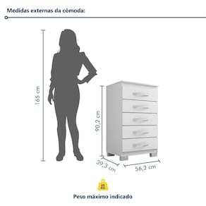 4 Pés Plásticos de 7cm de altura, para elevação do produto e proteção. Produto Montado: Sim Acabamento da Gaveta: Pintura UV Acabamento dos Pés: Liso Altura dos Pés: 5 cm Altura Máxima dos Pés: 5.0000 Ambiente Principal: Quarto codigo_ean: 7900288198624 Complexidade da Montagem: Média: pode ser montado por mais de uma pessoa e/ou necessite de maior conhecimento para montagem Cor: Branco Cor do Produto: Branco Cor do Puxador: Prata Cor Flex: Não Escala de Brilho: Semi-Fosco Escala de Brilho da Gaveta: Semi-Fosco Gaveta com Chave: Não Itens Inclusos: 1 Cômoda, Manual de Montagem e Kit Ferragens Linha ou Coleção: Itapema Manual de Montagem e Instalação: https://product-hub-prd.madeiramadeira.com.br/975646/documents/3bf9cb4b-b49f-4628-b1b1-8c012242dd89e2199014546217226964798267.pdf Marca: Incorplac Material da Gaveta: MDP Material do Fundo: HDF Material do Puxador da Gaveta: Poliestireno Material dos Pés: ABS Material Principal: MDP Montagem Flex: Não Necessita Montagem: Sim Origem do Produto: Nacional Pés Reguláveis: Não Peso: 20 kg Peso Máximo por Gaveta: 5 kg Possui Espelho: Não Possui Nichos: Não Possui Pés: 04 Possui Portas: Não Possui Prateleiras: Não Possui Rodízio: Não Quantidade de Gavetas: 05 Gavetas Recomendações de Uso, Manutenção e Limpeza: Limpar com Pano Seco, não utilizar produtos Químicos ou abrasivos Sapatas Niveladoras: Não Sistema de Montagem: Cavilha, girofix, parafusos e cola Suporta Até (kg): 25 kg Tipo de Cômoda: Adulto Tipo de Corrediça da Gaveta: Metálica Tipo de Puxador da Gaveta: Externo Marca: Não Informado
