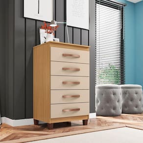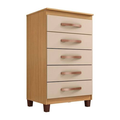 Cômoda Para Quarto 5 Gavetas Monique Carvalho/off White - Pallazio