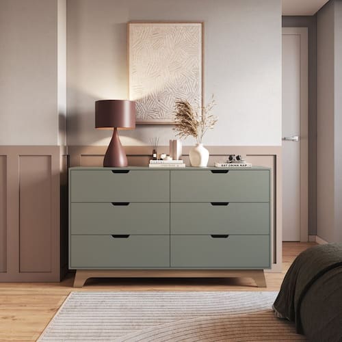 Suas 6 gavetas espaçosas oferecem o armazenamento perfeito para roupas, acessórios e itens do dia a dia. Os puxadores embutidos garantem um toque moderno e discreto, enquanto a base com pés em louro freijó grann traz um charme natural que valoriza ainda mais o ambiente.