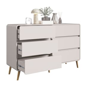 A Cômoda 06 Gavetas Linha Curve da Completa Móveis apresenta funcionalidade, praticidade e elegância com design arrojado e atemporal! Com cantos arredondados, traz uma leveza ao ambiente. As molduras laterais arredondadas são em MDF, garantindo qualidade superior. Possui seis gavetas com corrediças telescópicas e pés plásticos. Produto entregue desmontado. Produto Montado: Sim Acabamento da Gaveta: BP Altura dos Pés: 16 cm Altura Máxima dos Pés: 16.0000 Ambiente Principal: Quarto codigo_ean: 7900288248053 Complexidade da Montagem: Baixa: pode ser montado por uma pessoa sozinha Cor: Bege Dunas Cor do Produto: Bege Dunas Cor Interna: Bege Escala de Brilho: Fosco Escala de Brilho da Gaveta: Fosco Gaveta com Chave: Não Itens Inclusos: 1 Cômoda, Kit Ferragens e Manual de Montagem Linha ou Coleção: Curve Manual de Montagem e Instalação: https://product-hub-prd.madeiramadeira.com.br/313211664/documents/e9dfd0a3-a4bf-47f8-9197-0dfa9130b0303239302522917588867860626.pdf Marca: Completa Móveis Material da Gaveta: MDP Material do Fundo: mdf Material dos Pés: Plástico Material Principal: MDP Necessita Montagem: Sim Origem do Produto: Nacional Pés Reguláveis: Não Peso: 58,3 kg Peso Máximo por Gaveta: 4 kg Possui Espelho: Não Possui Nichos: Não Possui Pés: 05 Possui Portas: Não Possui Prateleiras: Não Possui Rodízio: Não Quantidade de Gavetas: 06 Gavetas Recomendações de Uso, Manutenção e Limpeza: Use um pano levemente umedecido com água, seguido de pano seco. Não utilize produtos químicos ou abrasivos. Sapatas Niveladoras: Não Sistema de Montagem: Sistema de montagem via parafusos, cavilhas e kit minifix. Suporta Até (kg): 34 kg Tipo de Corrediça da Gaveta: Metálica Telescópica Tipo de Puxador da Gaveta: Embutido