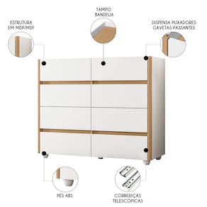 Esta Cômoda Para Quarto 8 Gavetas 120cm Lynd A02 Branco/Freijó, da Mpozenato, é a solução perfeita para quem busca organização e estilo para o Quarto.