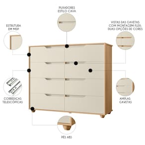 Cômoda Para Quarto 8 Gavetas 136cm Doble Flex Off/Freijó - Albatroz - Off White