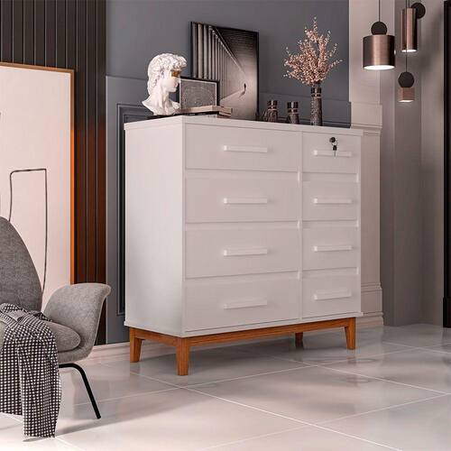 Cômoda Para Quarto 8 Gavetas Detroit Branco - Cor: Branco