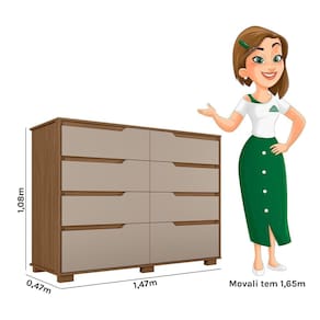 A Cômoda Georgia é perfeita para quem precisa de muito espaço para armazenar. Com 8