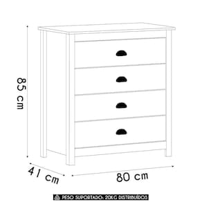 As gavetas, equipadas com corrediças telescópicas, deslizam suavemente, oferecendo uma experiência de uso prática e duradoura. Com amplo espaço interno, a cômoda é ideal para guardar roupas, acessórios e outros itens do dia a dia, unindo funcionalidade e organização em um único móvel.
