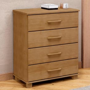 As quatro gavetas, com puxadores em madeira e equipadas com corrediças telescópicas, deslizam suavemente, oferecendo resistência e conforto no uso. O design dos puxadores realça a beleza natural da Cômoda de Casal, deixando-a ainda mais elegante.