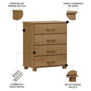 Cômoda Para Quarto 85cm 4 Gavetas Pés Madeira Eduarda Freijó F07