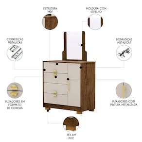 Cômoda Para Quarto 93cm Com Espelho Nara Imbuia/Fendi V02 - Mpozenato