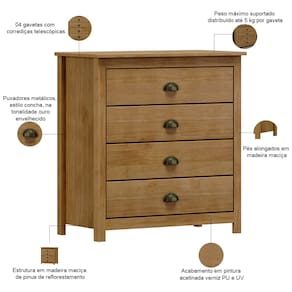 Cômoda Para Quarto Closet 4 Gavetas Madeira Maciça Mazzaro F06 Freijó - Lyam Decor - Bege