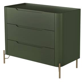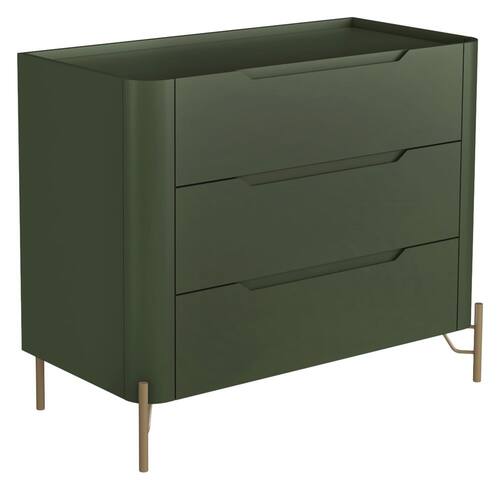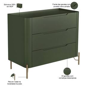 Cômoda Para Quarto Closet Orgânica 3 Gavetas Pés Industrial Dourado Bliss I03 Musgo - Lyam Decor - Verde