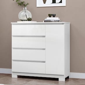 Cômoda Para Quarto Com 4 Gavetas E Armário - Vega Branco Cômoda para Quarto com 4 Gavetas e Armário - Vega Branco - Mais que uma cômoda, uma central de organização. A Cômoda Vega é a solução completa que une design inteligente e máxima capacidade de organização. Com 4 gavetas espaçosas e um armário com prateleira, ela oferece múltiplos compartimentos para manter tudo em ordem. O design minimalista com puxadores cava se adapta a qualquer decoração, enquanto as corrediças telescópicas e a construção robusta em MDP garantem a durabilidade para o uso diário. Disponível em diferentes acabamentos para combinar com seu estilo, é o móvel funcional que faltava no seu quarto.