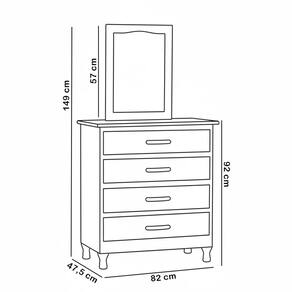 Com 4 gavetas, você organiza roupas, maquiagens, joias e produtos de beleza com total praticidade, ao passo que a moldura com espelho integrada elimina a necessidade de comprar um espelho separadamente, tornando seu ritual matinal muito mais eficiente. Além disso, o design clássico e versátil, somado aos pés torneados, garante um visual elegante que se adapta perfeitamente ao seu quarto. Transforme seu momento de cuidado pessoal em uma experiência luxuosa e organizada, com essa cômoda penteadeira. Adicione ao seu carrinho e aproveite!