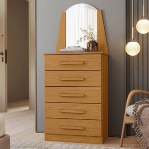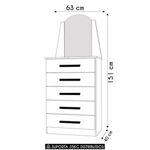 Com um design sofisticado, ela conta com cinco gavetas espaçosas que oferecem amplo armazenamento para maquiagem, acessórios e outros itens pessoais. As corrediças telescópicas garantem que as gavetas deslizem com suavidade e sem ruídos, proporcionando praticidade e conforto no uso diário. Além da excelente capacidade de armazenamento, a Penteadeira é equipada com um espelho de tamanho ideal para facilitar a rotina de cuidados pessoais e maquiagem. O puxador em MDF revestido complementa o visual moderno e refinado da peça, garantindo resistência e durabilidade, além de um toque de sofisticação para a Cômoda. A pintura UV confere um acabamento brilhante e resistente, que mantém a peça bonita e preservada por mais tempo. Combinando beleza, funcionalidade e design, a Cômoda Penteadeira é perfeita para quem deseja adicionar charme e organização ao seu ambiente.