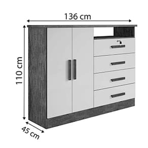 A Cômoda com Sapateira 4 Gavetas - Modelo New Athos é perfeito para a organização de suas roupas. Além disso, possui uma Sapateira com amplo espaço, produzida em Madeira MDP e tampo de MDF 25mm. Em outras palavras, a cômoda ideal para seu quarto. MEDIDAS: Altura: 1.10mLargura: 1,36mProfundidade: 0,45m CARACTERÍSTICAS: