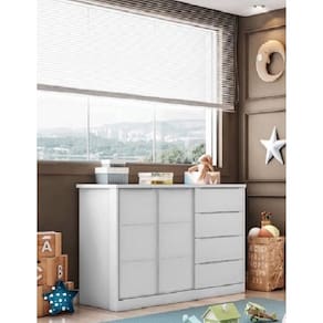 Cômoda Infantil Pérola 4 Gavetas 2 Porta vão ficar perfeita no quarto do seu bebê. Suas gavetas são feitas com corrediças metálicas que proporcionam maior conforto e durabilidade, no movimento de abrir e fechar, além de conter 2 portas , para guardar fraldas, lenços umedecidos e mais o que achar necessário! Confira!