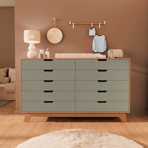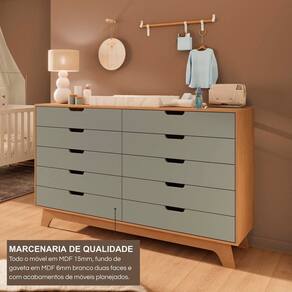 Prática, versátil e cheia de charme, a cômoda Alice infantil com 10 gavetas é perfeita para transformar o quarto do seu bebê em um espaço organizado e acolhedor. Produzida em MDF de 15cm com fundos de 6cm e acabamento melamínico, ela une durabilidade e beleza em cada detalhe. As corrediças telescópicas garantem abertura suave e segura, ideal para o dia a dia. Na elegante combinação Verti com tom verde acinzentado com Castanho e interior branco, ela também funciona como trocador, oferecendo praticidade sem abrir mão do estilo. Produto Montado: Sim Acabamento da Gaveta: Melamínico Acabamento dos Pés: Melamínico Altura dos Pés: 15 cm Altura Máxima dos Pés: 15.0000 Ambiente Principal: Quarto Infantil codigo_ean: 7901008601073 Complexidade da Montagem: Alta: deve ser montado por um montador especializado Cor: Verti/ Castanho Cor do Produto: Verti/ Castanho Cor Flex: Não Cor Interna: Branco Escala de Brilho: Fosco Escala de Brilho da Gaveta: Fosco Gaveta com Chave: Não Itens Inclusos: 1 Cômoda, Kit Ferragens e Manual de Montagem Linha ou Coleção: Alice Manual de Montagem e Instalação: https://product-hub-prd.madeiramadeira.com.br/832806473/documents/b4d5bf61-c0e7-40a0-8b28-8291f667376f3143718657817555197957093.pdf Marca: FD Material da Gaveta: MDF Material do Fundo: MDF Material dos Pés: MDF Material Principal: MDF modular: Não Montagem Flex: Não Necessita Montagem: Sim Origem do Produto: Nacional Pés Reguláveis: Não Peso: 80,6 kg Peso Máximo por Gaveta: 5 kg Possui Espelho: Não Possui Nichos: Não Possui Pés: 02 Possui Portas: Não Possui Prateleiras: Não Possui Rodízio: Não Quantidade de Gavetas: 10 Gavetas Recomendações de Uso, Manutenção e Limpeza: Limpar somente com um pano levemente umedecido. Indicado para ambientes internos Sapatas Niveladoras: Não Sistema de Montagem: Parafusos, cavilhas e minifix Suporta Até (kg): 50 kg Tipo de Cômoda: Infantil Tipo de Corrediça da Gaveta: Metálica Telescópica Tipo de Puxador da Gaveta: Embutido
