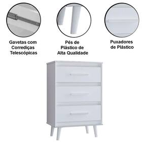 Suas 3 gavetas espaçosas oferecem o lugar ideal para organizar roupas, acessórios e objetos pessoais, mantendo tudo sempre à mão. Compacta e versátil, pode ser utilizada no quarto, no closet ou até em áreas de apoio, otimizando o espaço sem abrir mão da beleza.