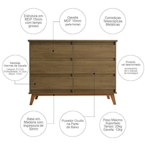 IMAGENS MERAMENTE ILUSTRATIVAS, PODENDO HAVER UMA PEQUENA VARIAÇÃO DE COR DEPENDENDO DE CADA TELA OU MONITOR.CÃmoda para Quarto ReforÃada Londres com 6 Gavetas - Canela