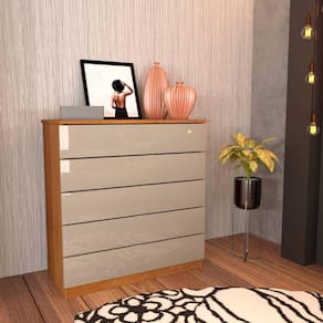 Cômoda para quarto solteiro 5 gavetas - Premium -Cinamomo/Off White - Tcil Móveis
